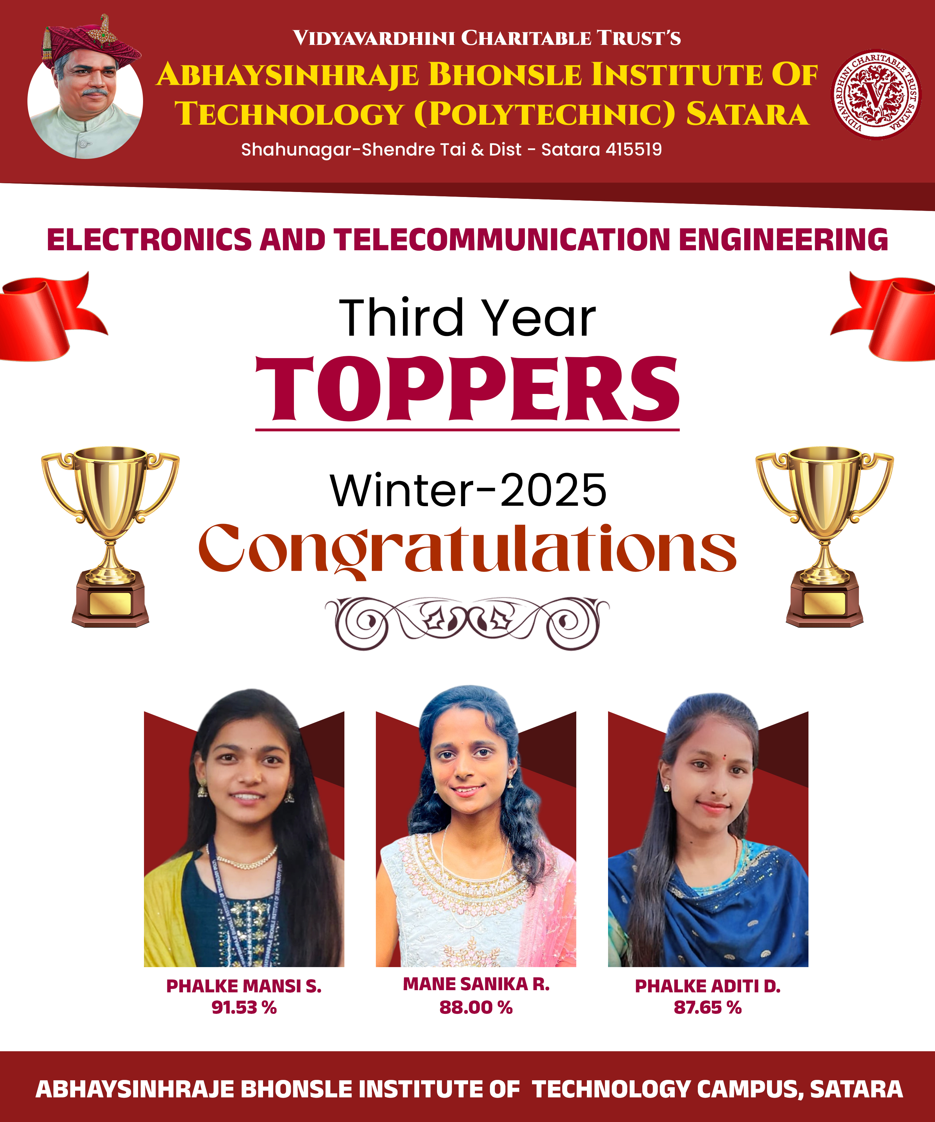 “To impart quality technical education in Electronics and Telecommunication Engineering that prepares competent professionals to meet upcoming industrial and social needs”.